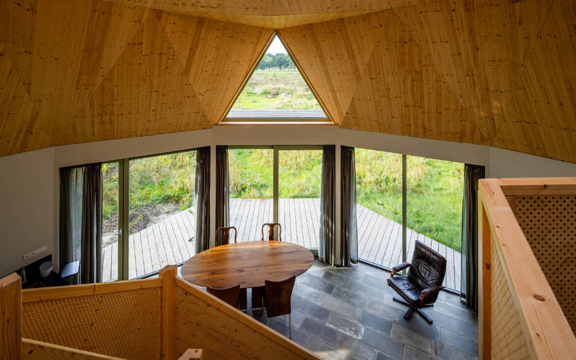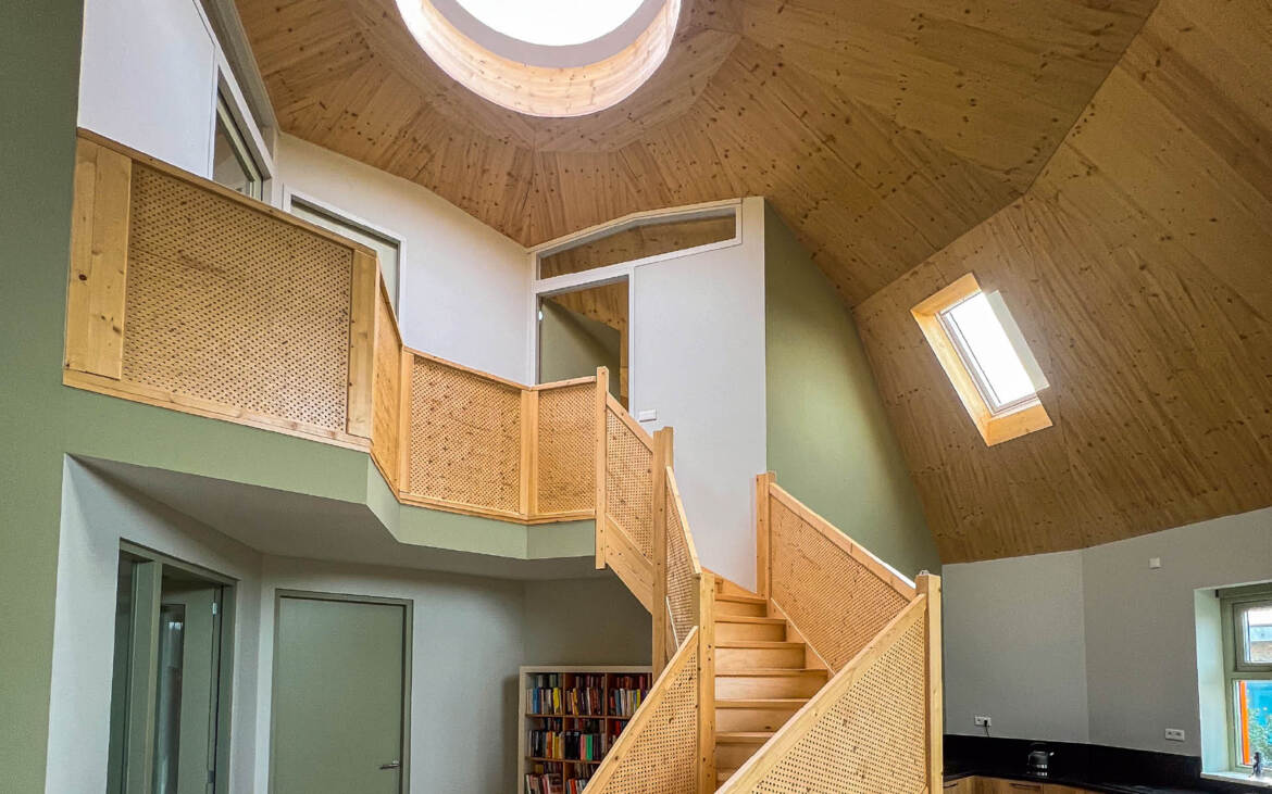 Na een eerste voorlopig ontwerp is de aannemer, Timber Living geselecteerd. Timber Living dis een Nederlandse aannemer gespecialiseerd in bijzondere projecten uitgevoerd in prefab houtskeletbouw. Op deze wijze kon het definitieve Ontwerp met de bijzondere detaillering en koepelconstructie zorgvuldig worden uitgewerkt.