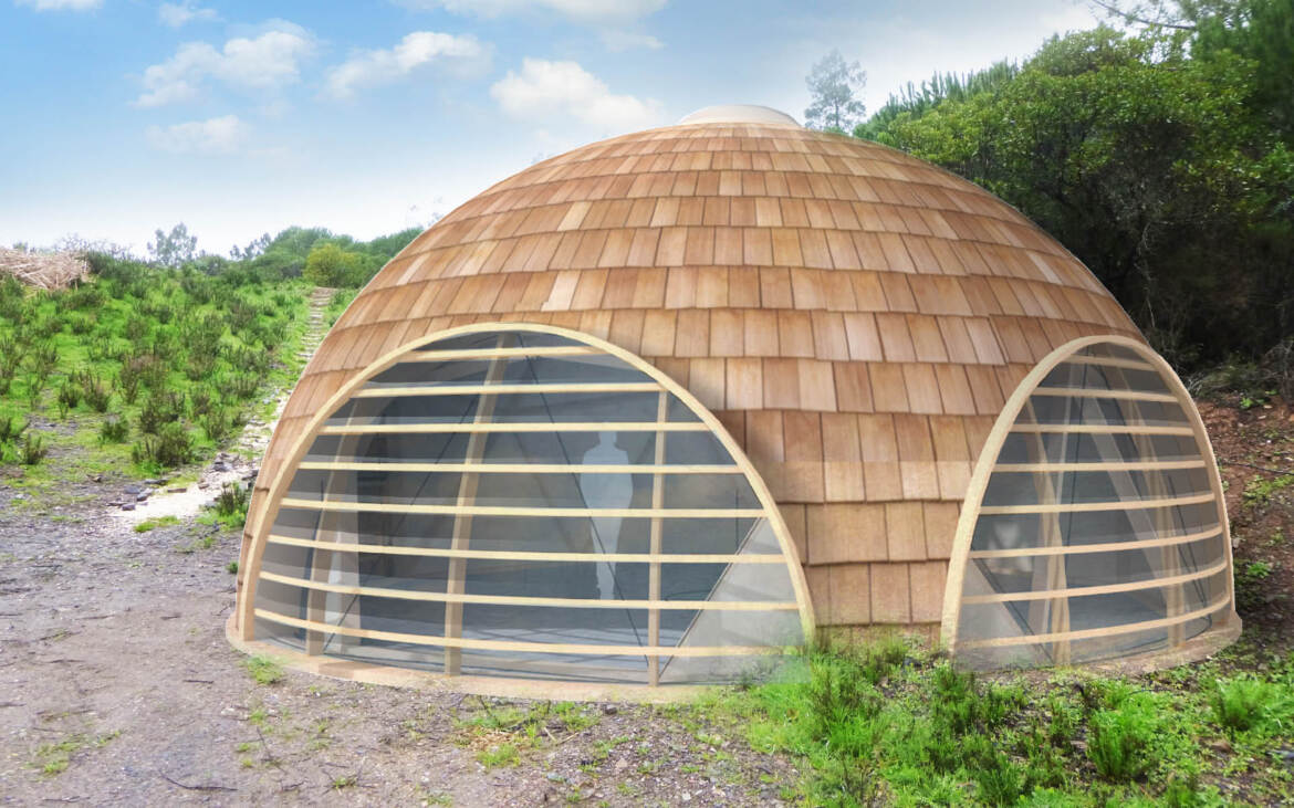 Arc2 architectuur heeft voor een particuliere opdrachtgever een ontwerp gemaakt voor een duurzaam verblijf in een natuurgebied in Portugal. Het gewenste programma is ondergebracht in een tweetal lodges met carports en een centraal verblijf binnen een geodetische koepel met onder meer een logie en een gezamelijke woonkamer en keuken. De houten geodetische koepel, met een diameter van zeven meter, is deels opgenomen in de grond en heeft een hoogwaardige thermische schil. Het voorstel is om de buitenzijde van de koepel te bekleden met houten shingles. Het ontwerp is toegespitst op de wens voor zelfbouw met toepassing van lokale materialen, handzame elementen en low-tech oplossingen.
