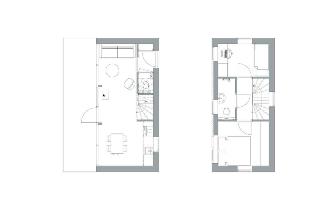 Het ontwerp is een open plattegrond met leefkeuken en woonkamer op de begane grond met slaapkamers en badkamer op de verdieping. De microwoning is georiënteerd op het zuiden/zuidwesten met op de begane grond een volledig beglaasde gevel richting de tuin. Vanuit kostenoverweging zijn de overige gevelopeningen zo ontworpen dat ze voldoen aan de minimale daglichteisen uit het Bouwbesluit en tegelijkertijd mooie doorkijkjes bieden op de groene omgeving. Door het huisje met de vrijwel gesloten voorgevel zo dicht mogelijk tegen de straatzijde te plaatsen ontstaat een zo groot mogelijke achtertuin. Om het milieu minimaal te belasten wordt bij de bouw van de microwoning maximaal gebruik gemaakt van hergebruikte materialen.