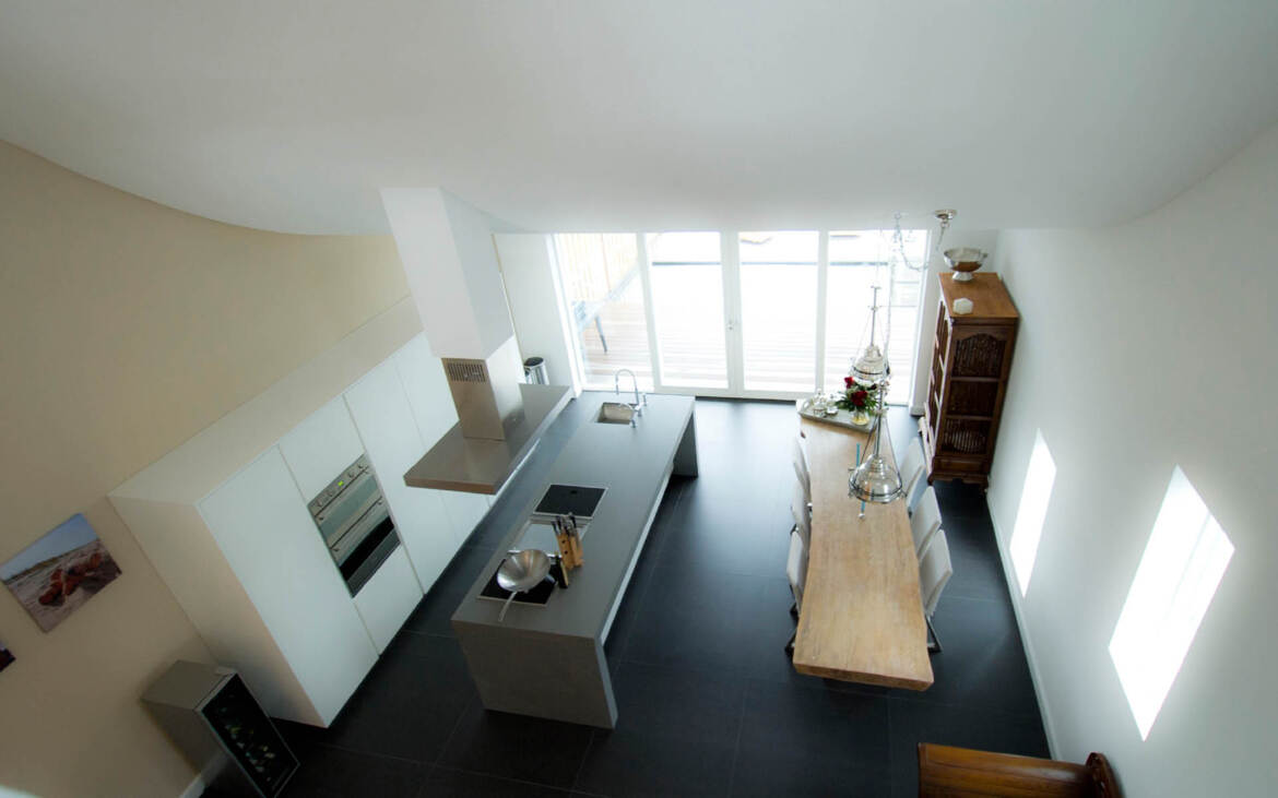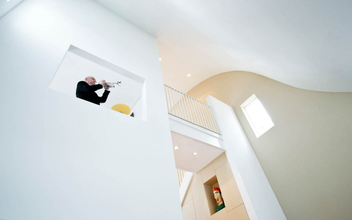 Het huis heeft aan de voorzijde uitzicht op een haven en is aan de achterzijde georienteerd op een zen-tuin. De woonruimten in de villa zijn met elkaar verbonden middels een grote centrale trap van bamboe. Het huis biedt meerdere plekken voor het geven van een trompetconcert: het balkon boven de erker of het bordes in de ruim acht meter hoge woonkeuken. In de zijgevel zijn de raamopeningen als muzieknoten op een notenbalk geplaatst, uiteraard als knipoog naar de passie van bewoner. Het huis vormt een architectonische serenade waar de opdrachtgever zijn unieke geluid kan laten schallen.